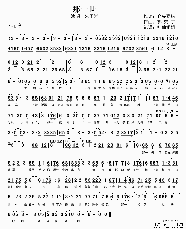 关于《那一世》曲谱的评论