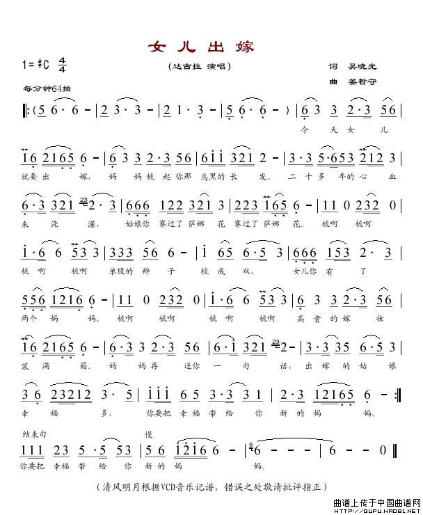 关于《女儿出嫁》曲谱的评论