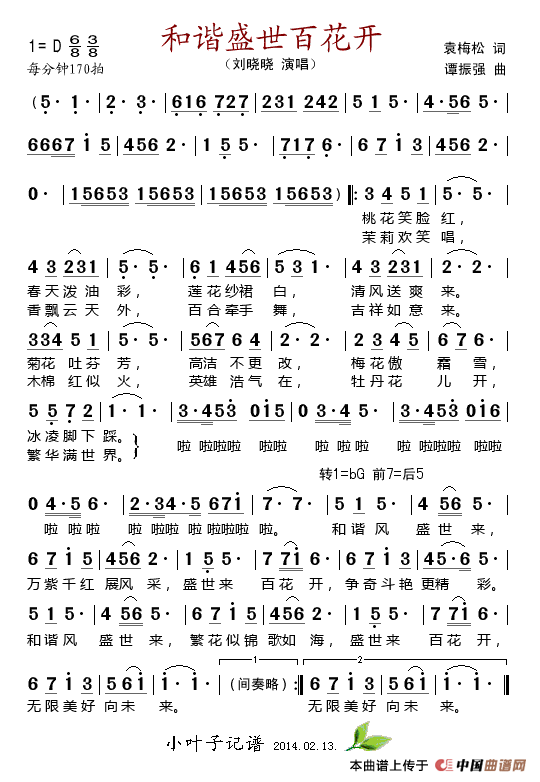 关于《和谐盛世百花开》曲谱的评论