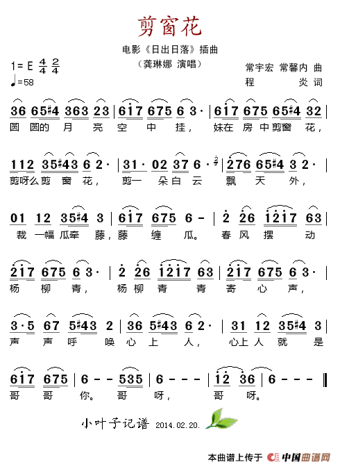 关于《剪窗花(电影《日出日落》插曲)》曲谱的评论