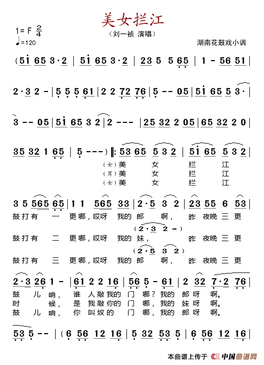 关于《美女拦江》曲谱的评论