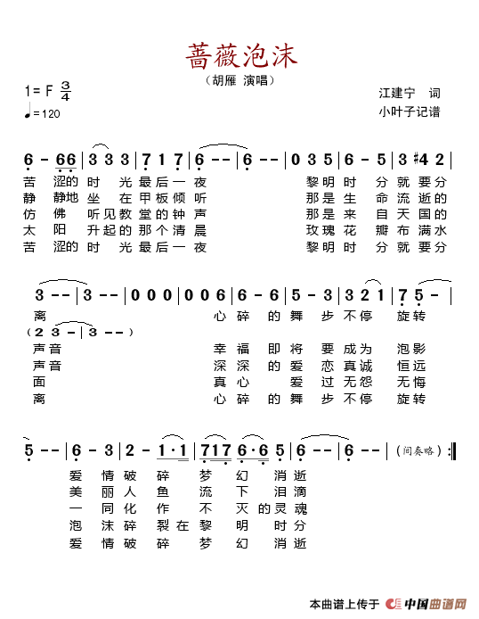 关于《蔷薇泡沫》曲谱的评论