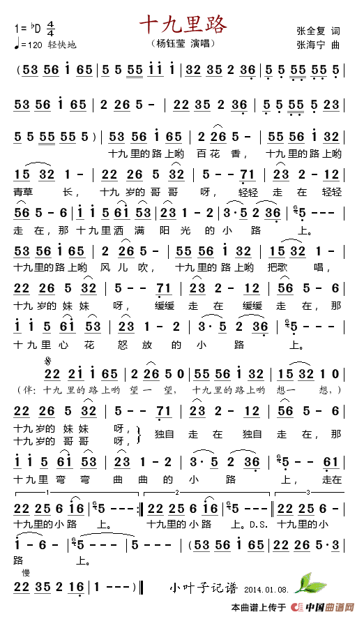 关于《十九里路》曲谱的评论