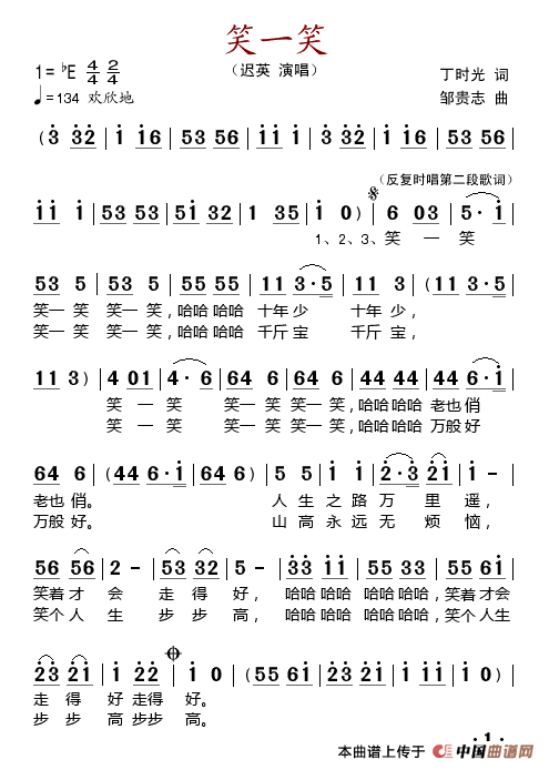 当前位置: 首页 谱友园地 谱友记谱 笑一笑(丁时光词 邹贵志曲)