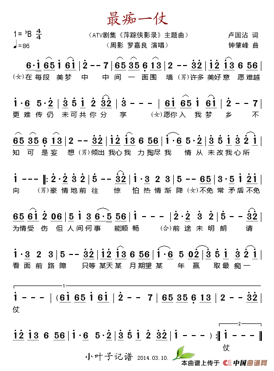 关于《最痴一仗(ATV剧集《萍踪侠影录》主题曲)》曲谱的评论