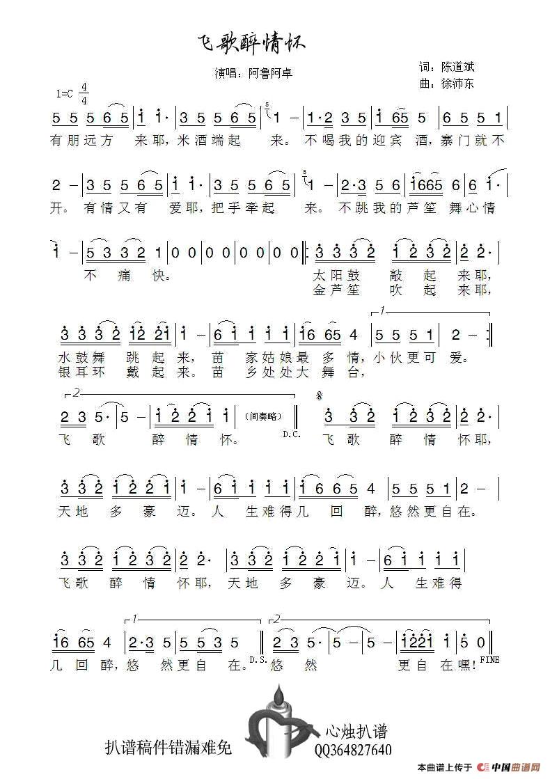 关于《飞歌醉情怀》曲谱的评论