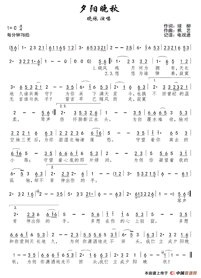 关于《夕阳晚秋》曲谱的评论