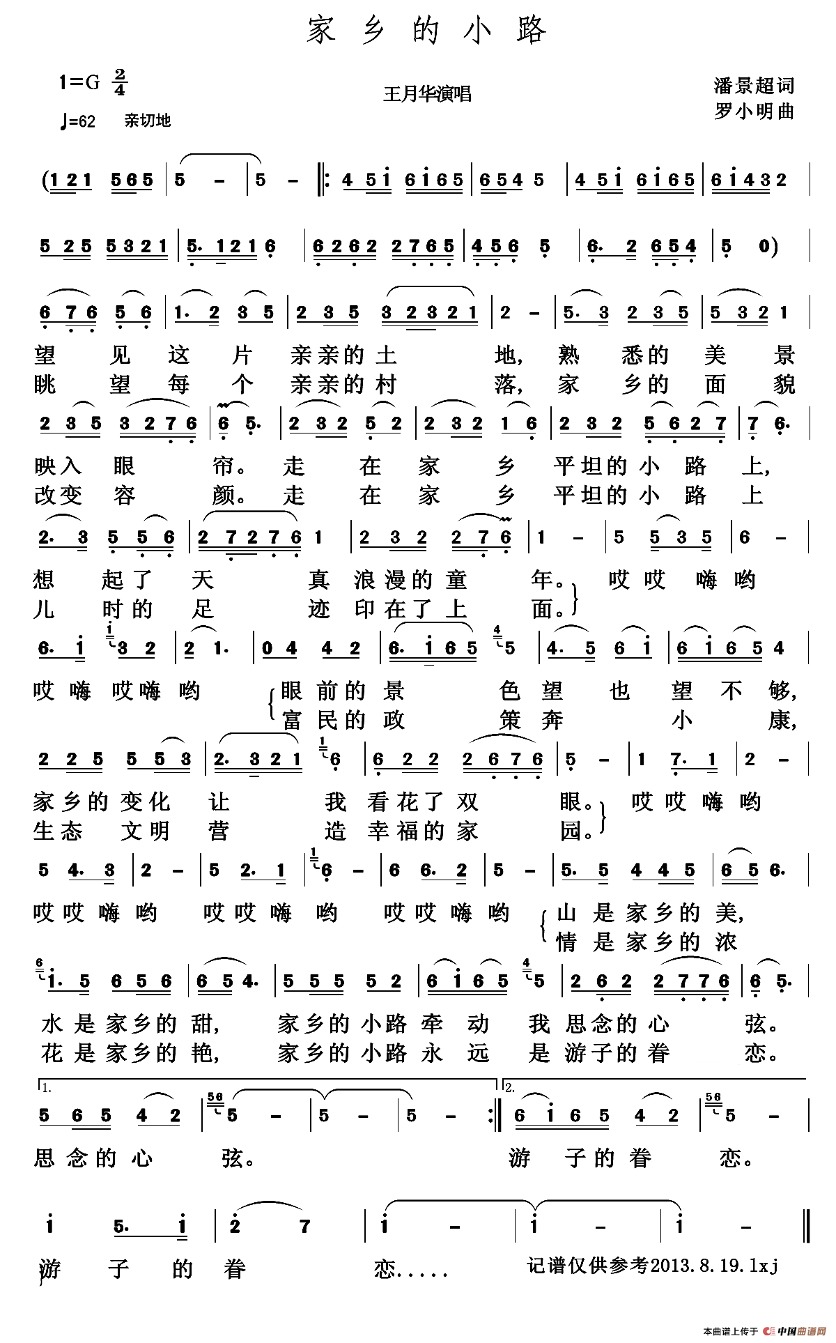 关于《家乡的小路》曲谱的评论