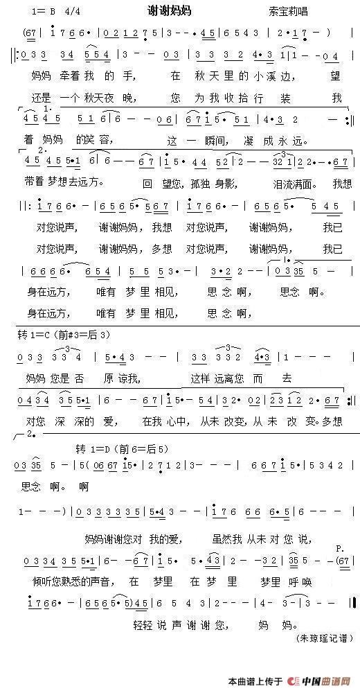演唱(奏):索宝莉 来源:据网络音频朱琼瑶记谱 上传:朱琼瑶