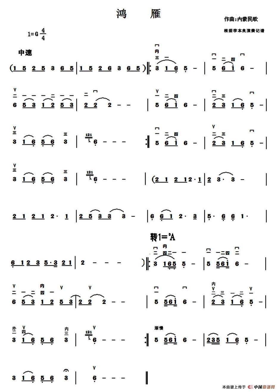 参照鸿雁歌曲版本和李本良老师演奏的鸿雁整理而成。不对的地方敬请指正。