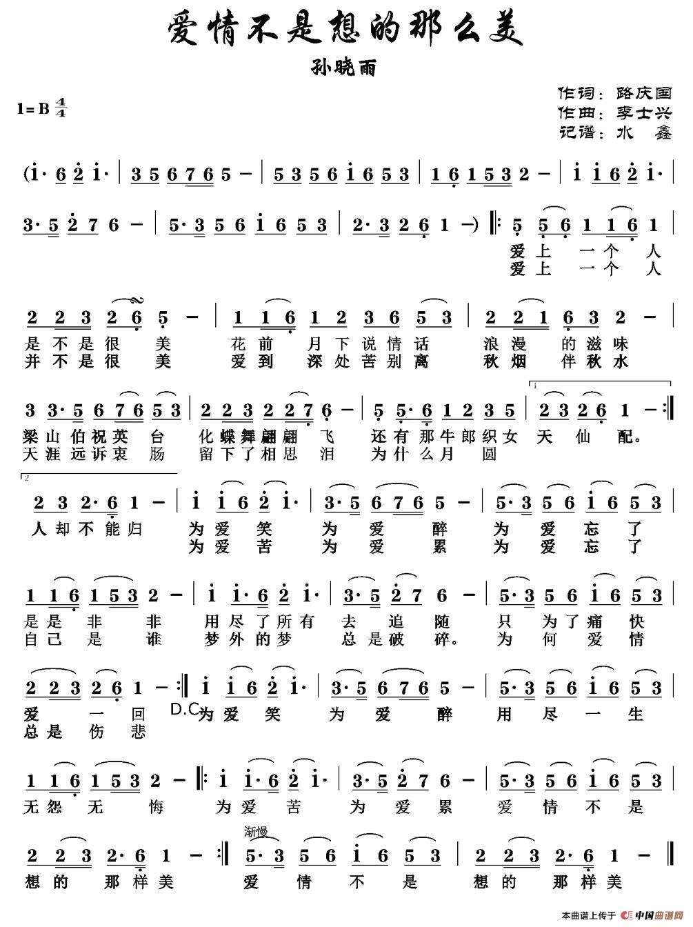 关于《爱情不是想的那么美》曲谱的评论