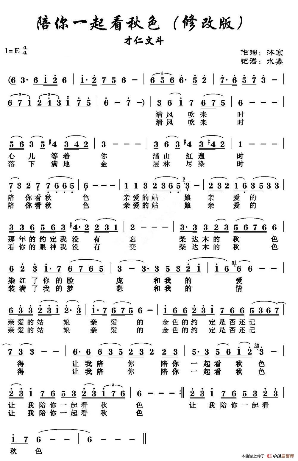 关于《陪你一起看秋色》曲谱的评论