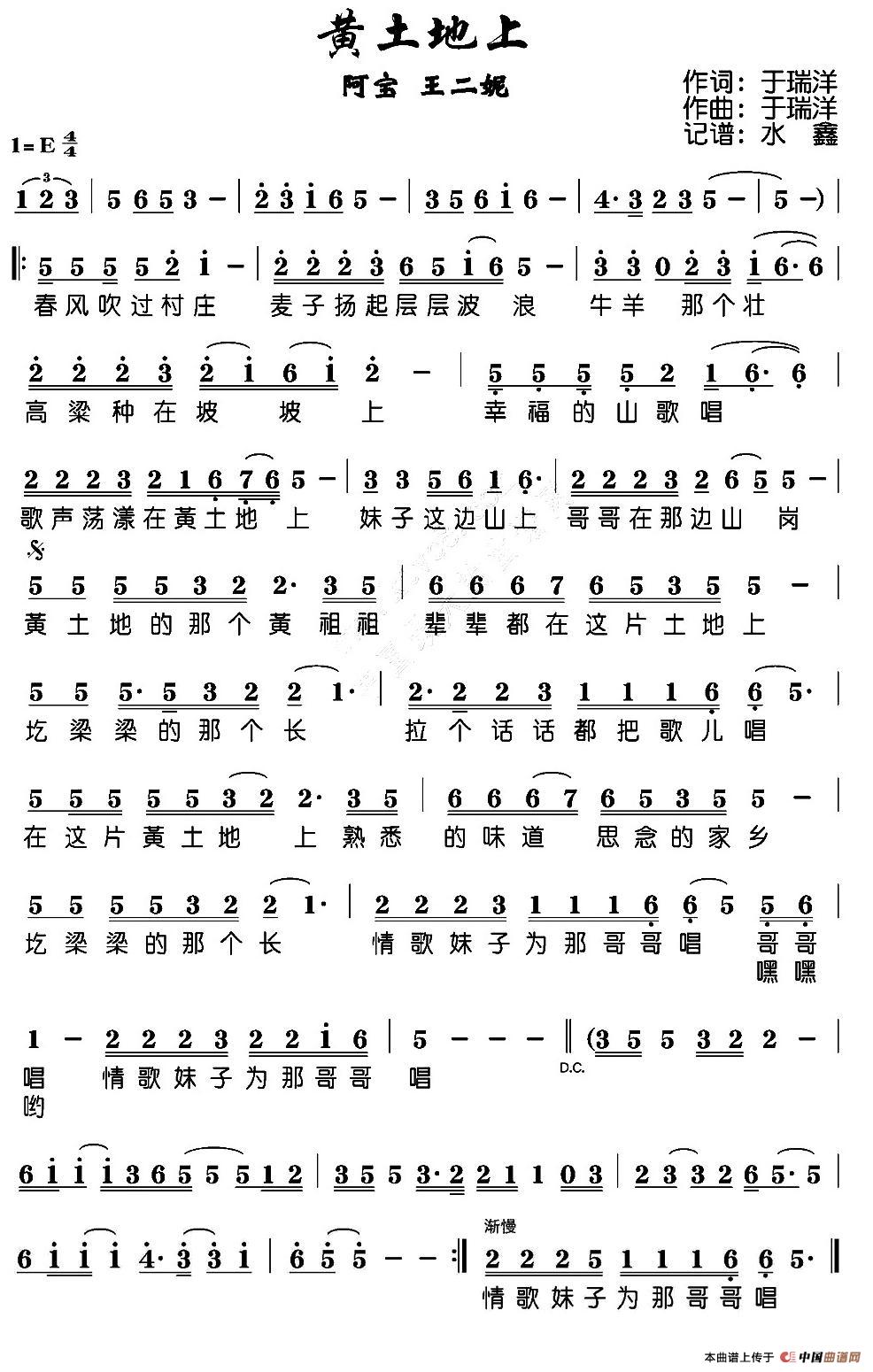歌声荡漾在黄土地上,拉个话话把歌儿唱,情歌妹子为那哥哥唱的最后一个音符应为低音5. [回复]