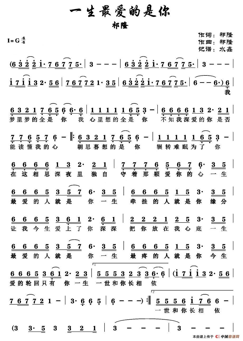 关于《一生最爱的是你》曲谱的评论