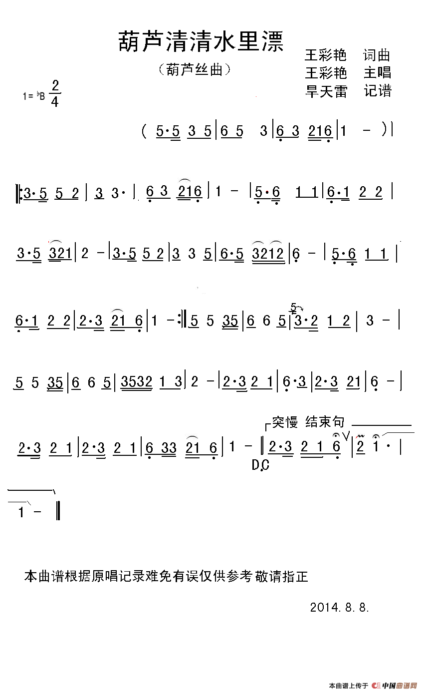 关于《葫芦清清水里漂》曲谱的评论