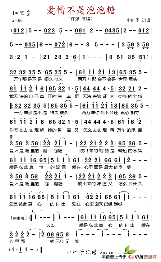 关于《爱情不是泡泡糖》曲谱的评论