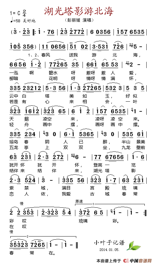 关于《湖光塔影游北海》曲谱的评论