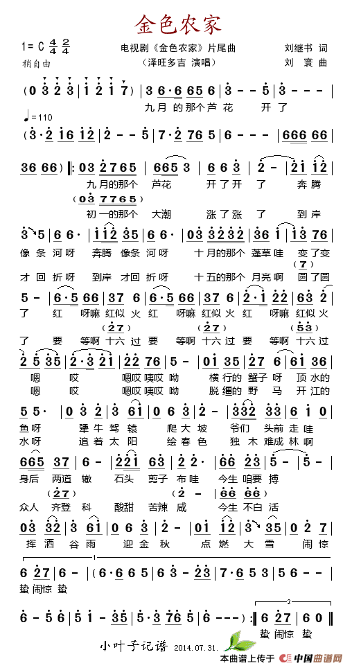 关于《金色农家》曲谱的评论