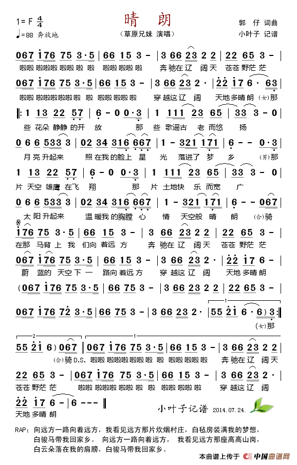 作词:郭仔   作曲:郭仔   演唱(奏):草原兄妹   来源:小叶子记谱   上传:~金沙浪~   日期:2014-09-09   浏览次数: