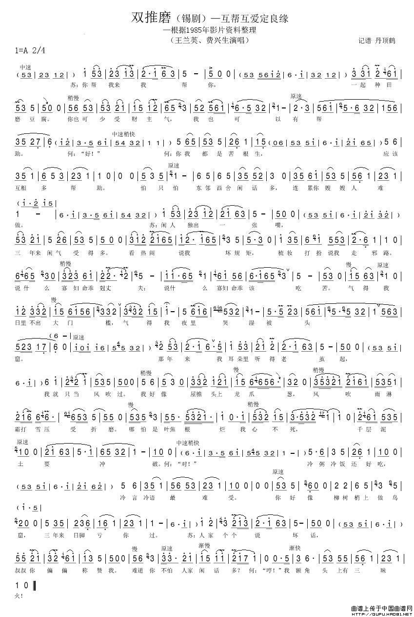 关于《双推磨——互帮互爱定良缘》曲谱的评论