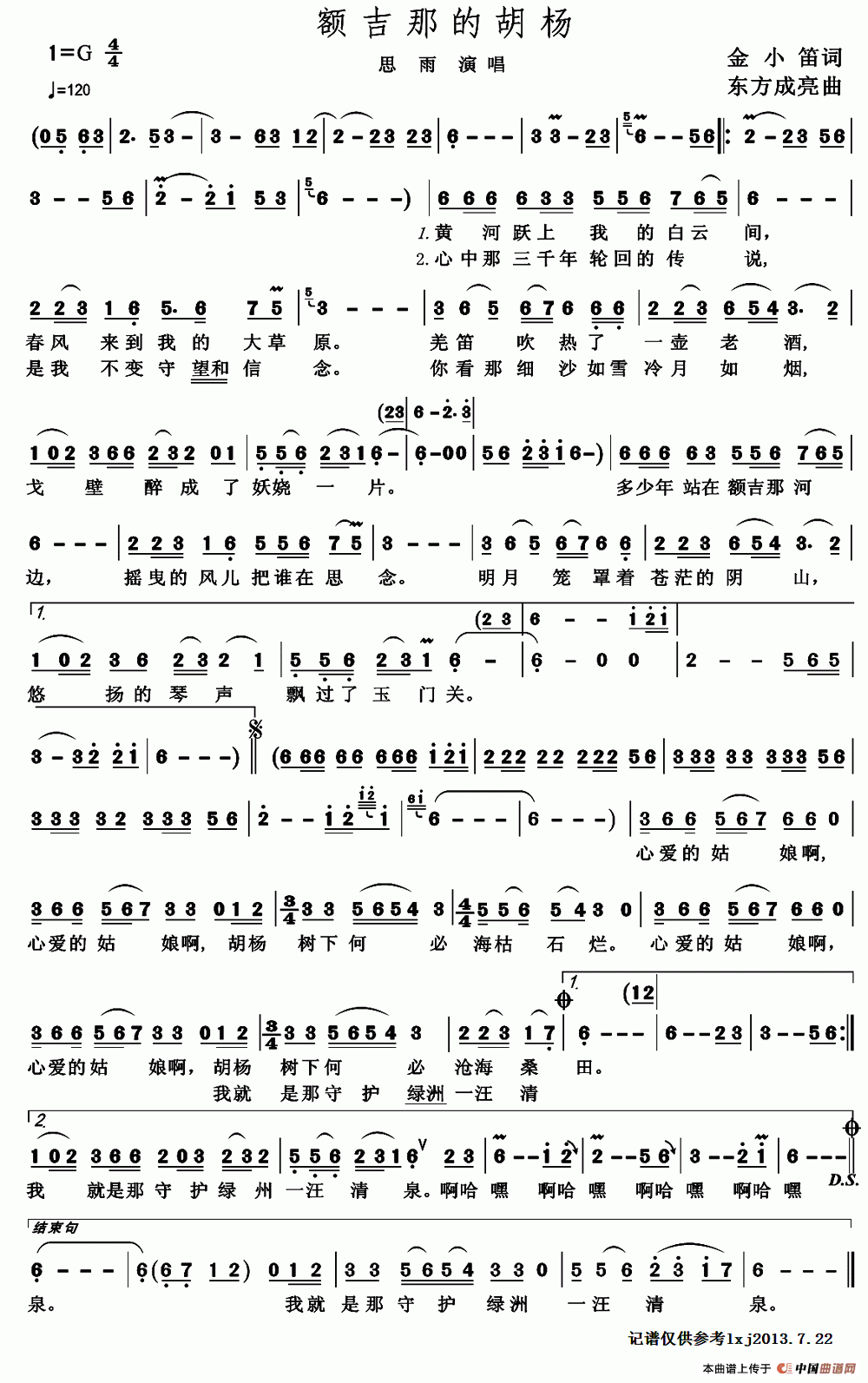 致谢:《中国曲谱网》衷心感谢记谱老师馈赠歌谱!