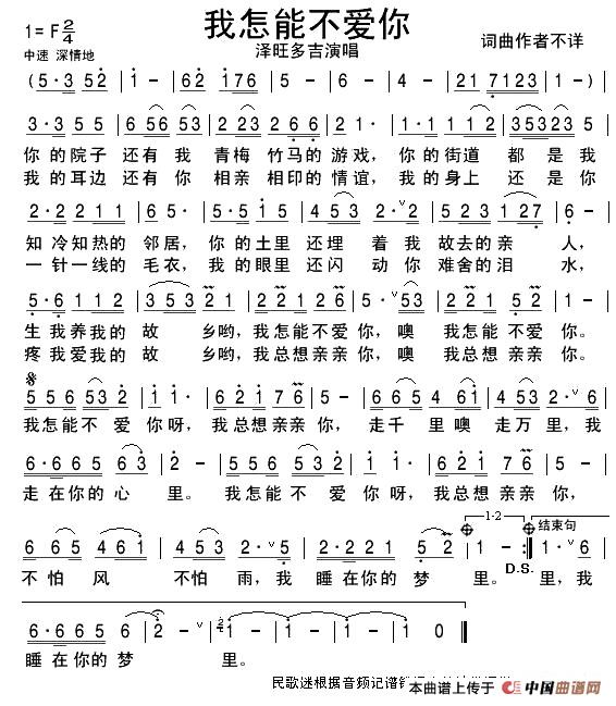 致谢:《中国曲谱网》衷心感谢记谱老师馈赠歌谱!