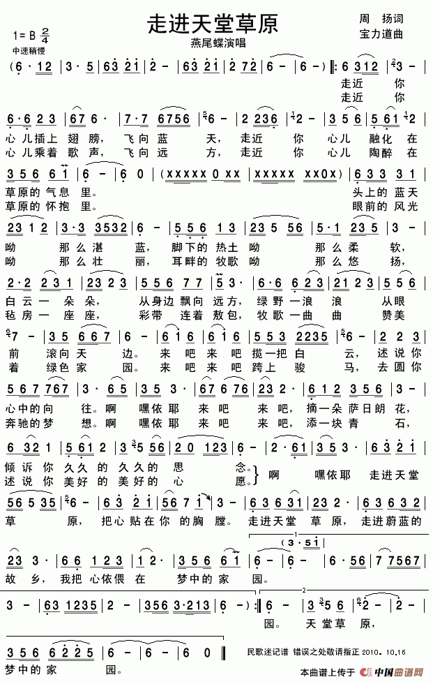 关于《走进天堂草原》曲谱的评论