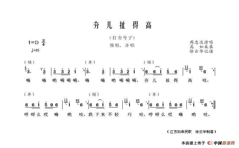 关于《夯儿扯得高》曲谱的评论