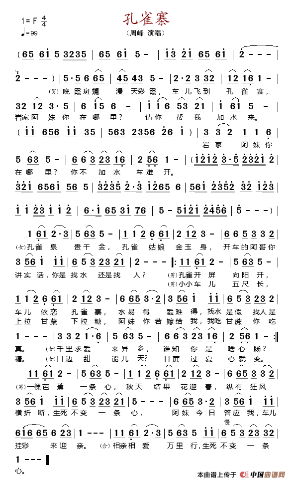 演唱(奏):邹峰 来源:小叶子记谱 上传:~金沙浪~