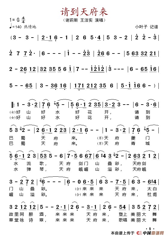 关于《请到天府来》曲谱的评论