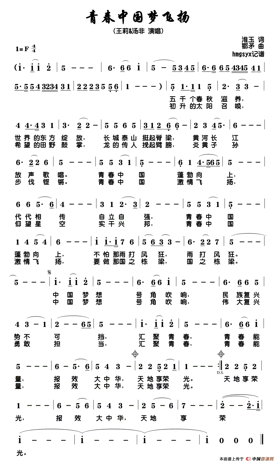 致谢:《中国曲谱网》衷心感谢记谱老师馈赠歌谱!
