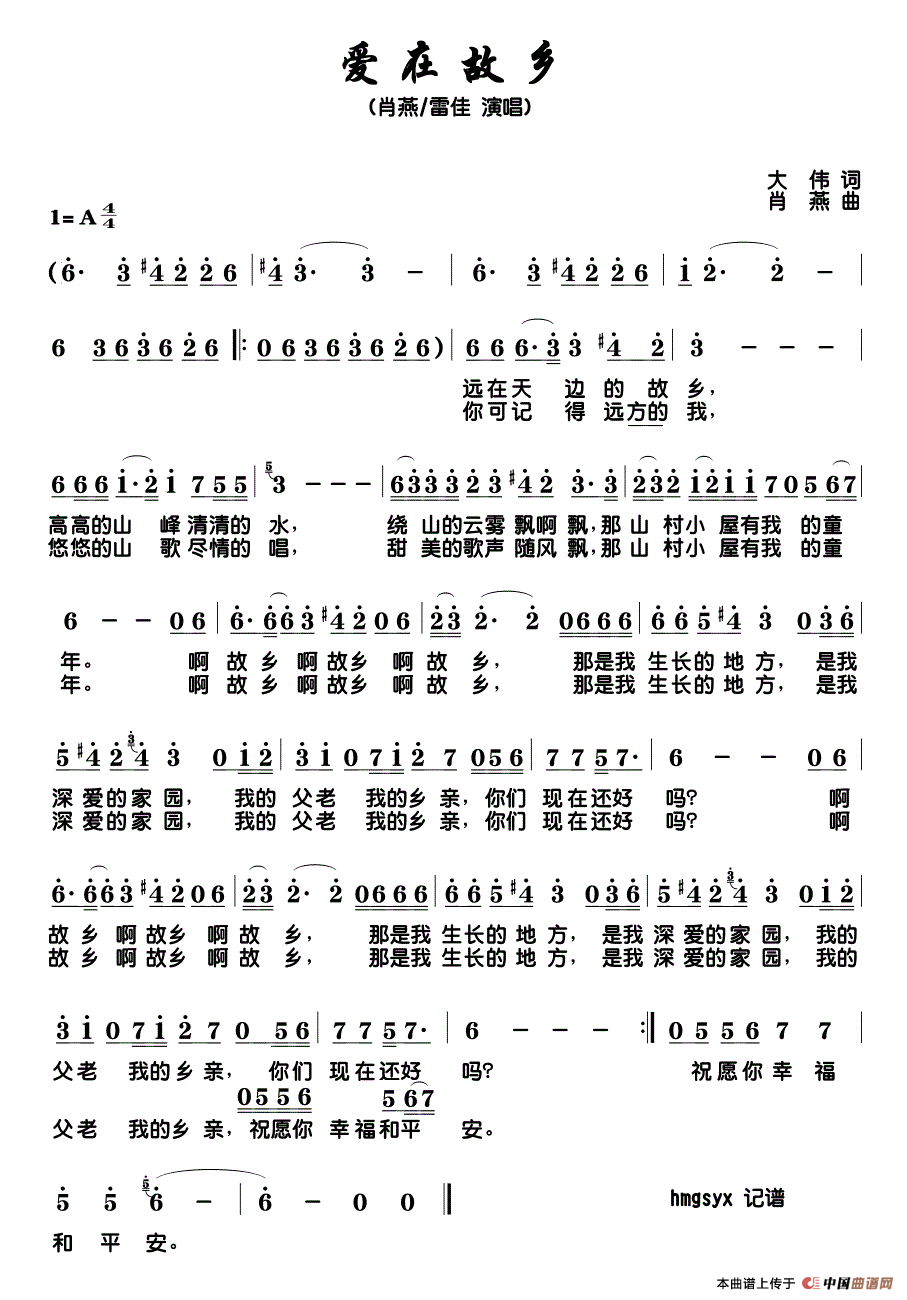 致谢:《中国曲谱网》衷心感谢记谱老师歌谱!