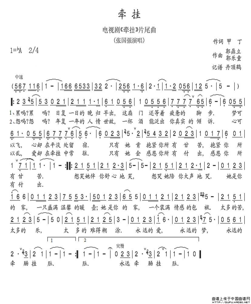 关于《牵挂》曲谱的评论