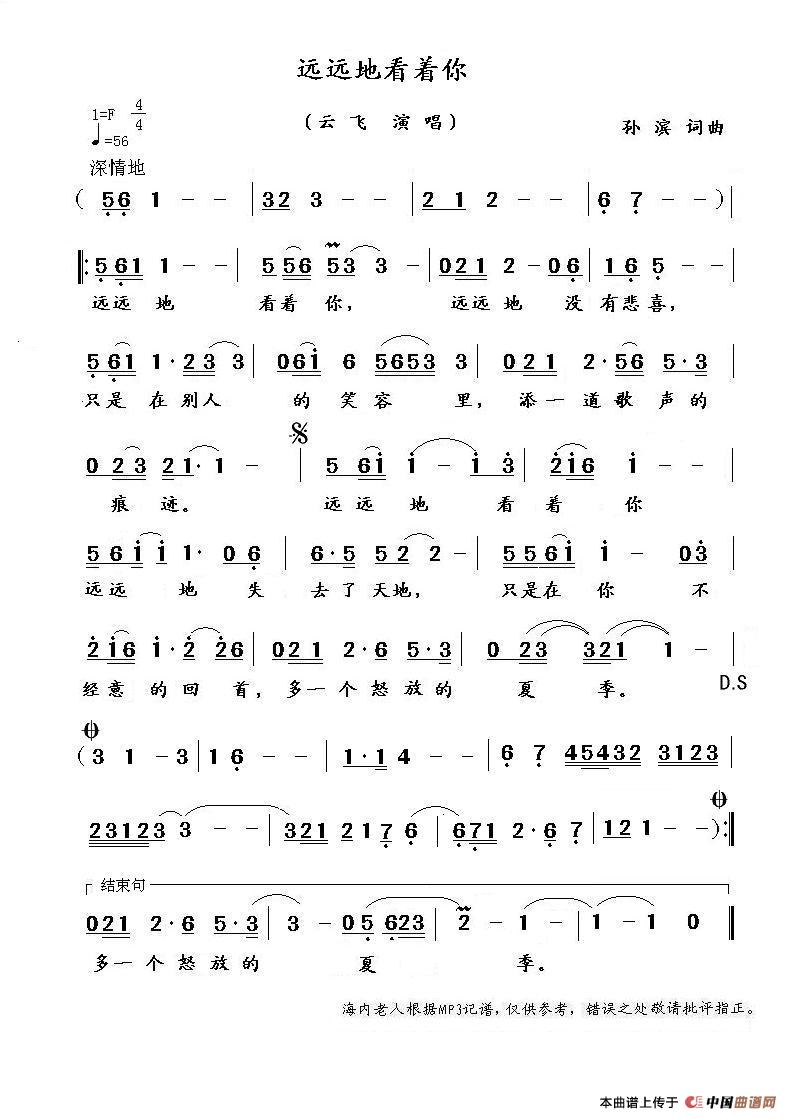 关于《远远地看着你》曲谱的评论
