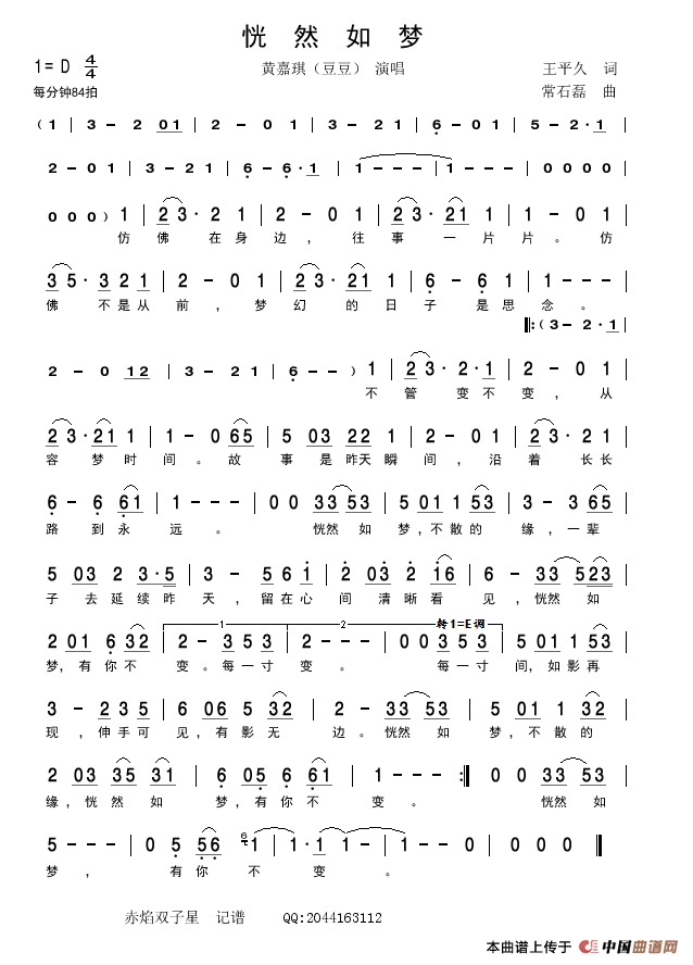 关于《恍然如梦》曲谱的评论