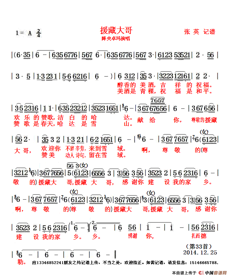 关于《援藏大哥》曲谱的评论