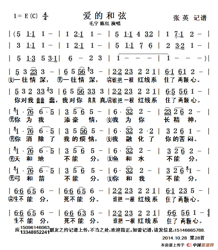 演唱(奏):毛宁、陈红 来源:张英记谱 上传:余文辉