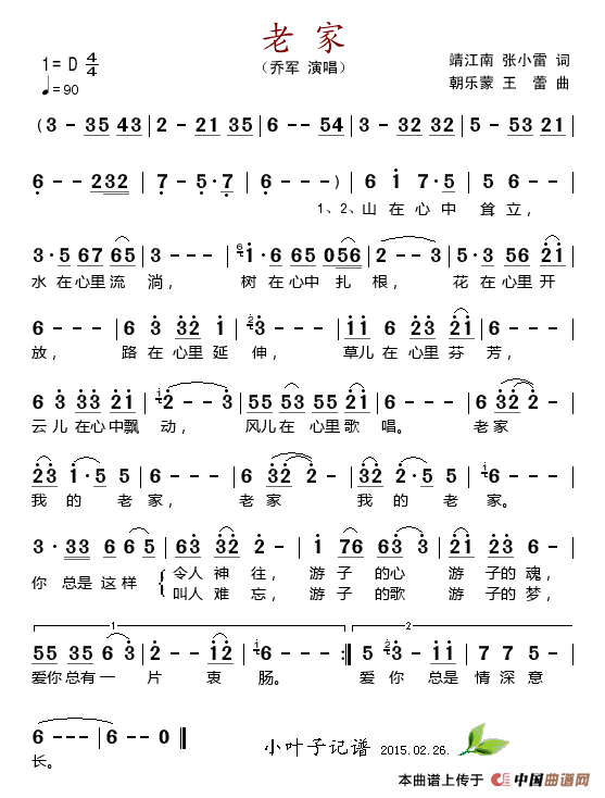 老家(靖江南、张小雷词 朝乐蒙、王蕾曲)