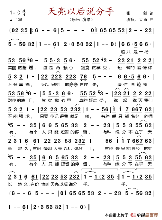 关于《天亮以后说分手》曲谱的评论