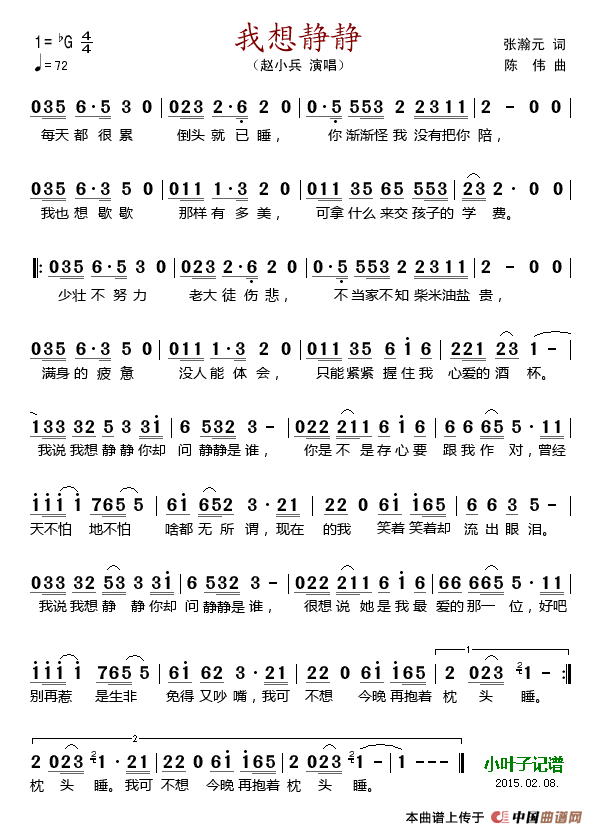 关于《我想静静》曲谱的评论