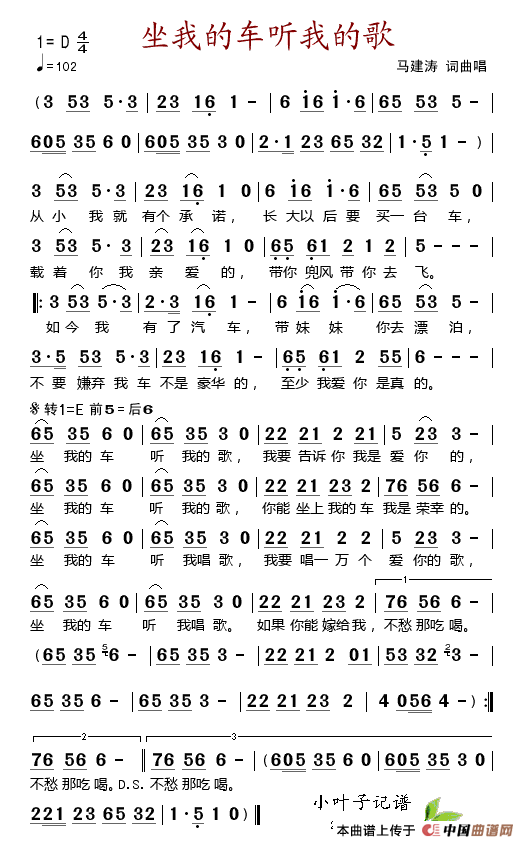 关于《坐我的车听我的歌》曲谱的评论