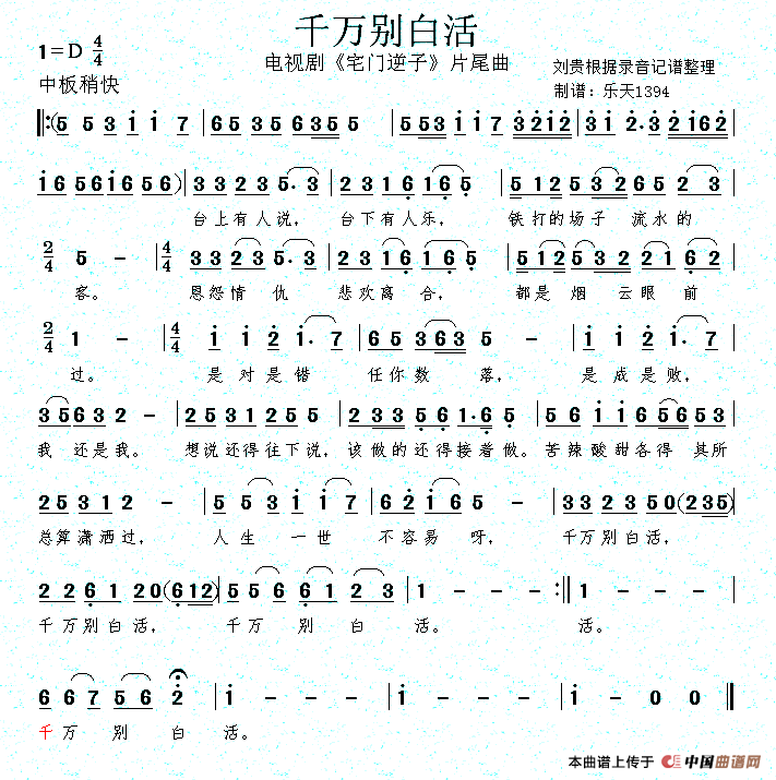 关于《千万别白活》曲谱的评论