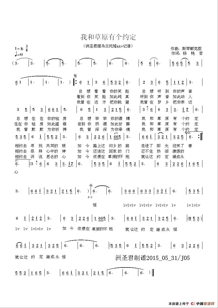 关于《我和草原有个约定》曲谱的评论