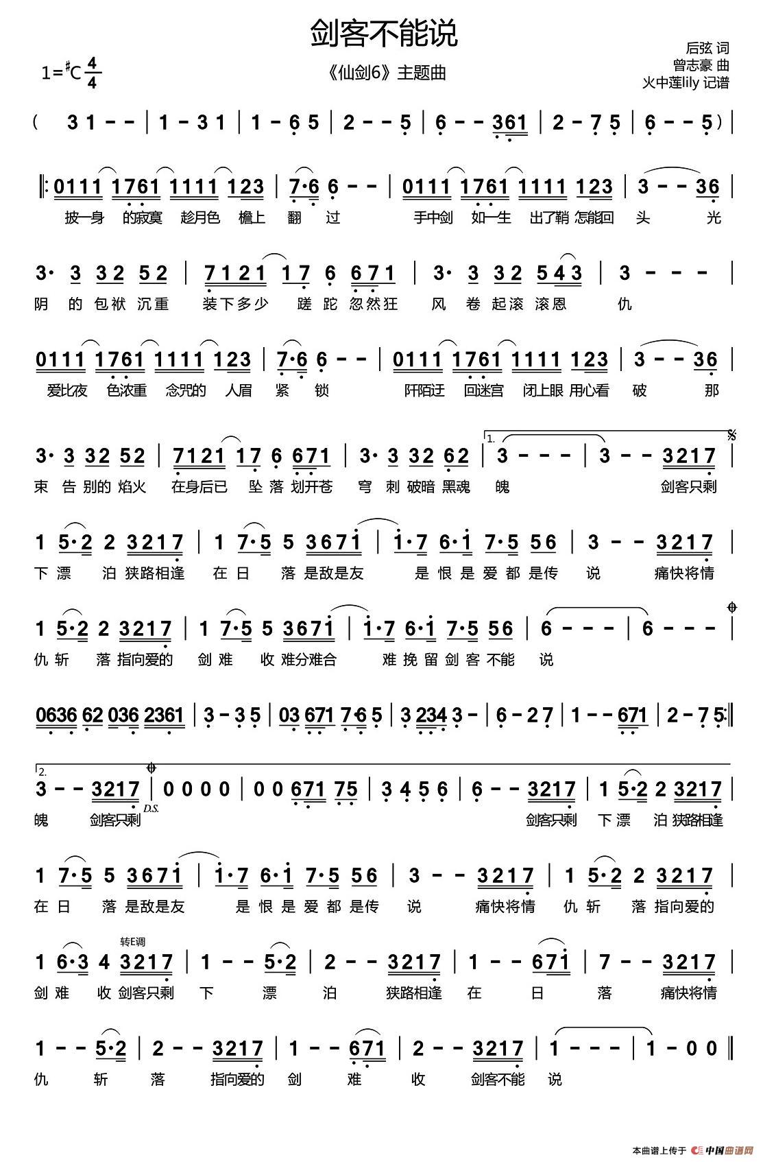提示:在曲谱图片上单击右键,选择"图片另存为..."即可将曲谱保存到您的电脑中,打印时候可将图片插入到WORD中,调整合适大小打印即可。