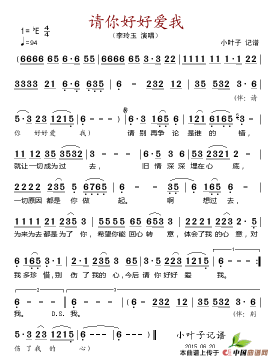 关于《请你好好爱我 》曲谱的评论