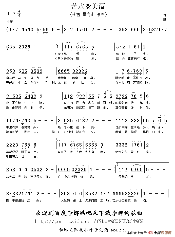 关于《苦水变美酒》曲谱的评论