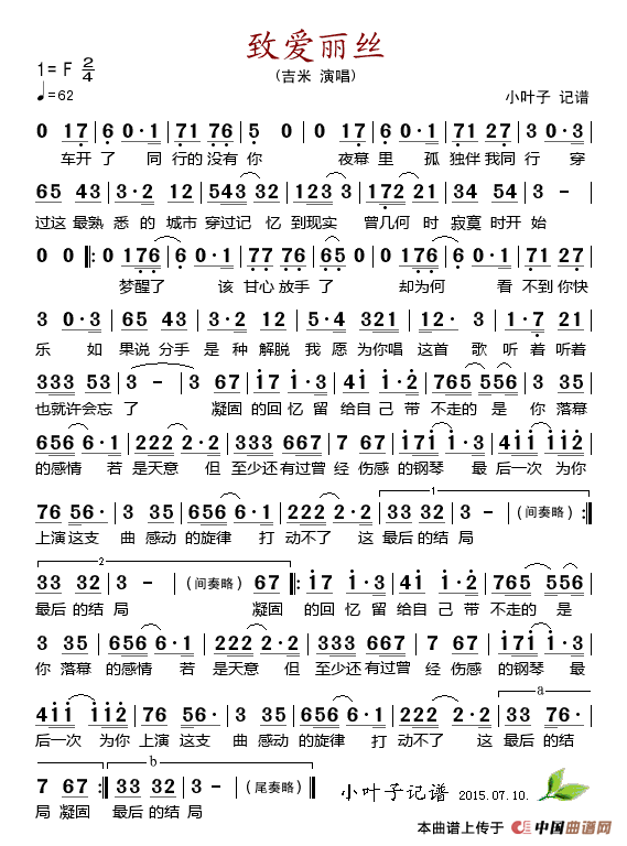 致爱丽丝(吉米演唱)