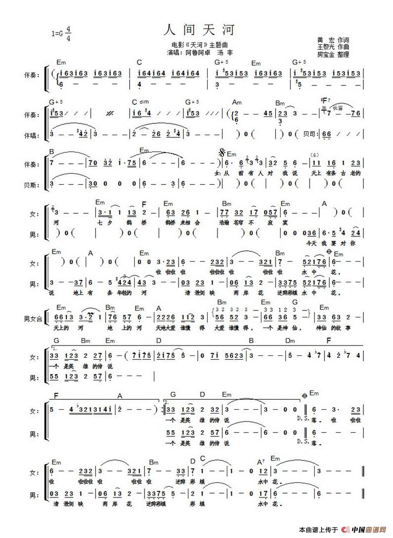 关于《人间天河》曲谱的评论