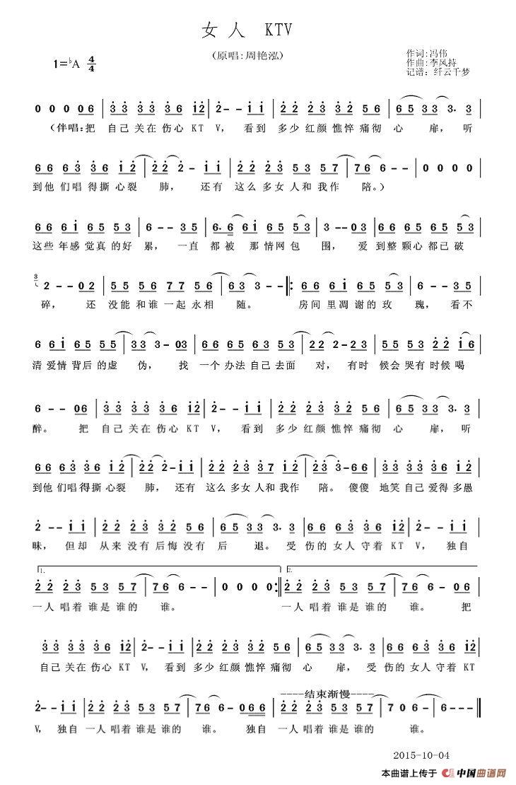 关于《女人KTV》曲谱的评论