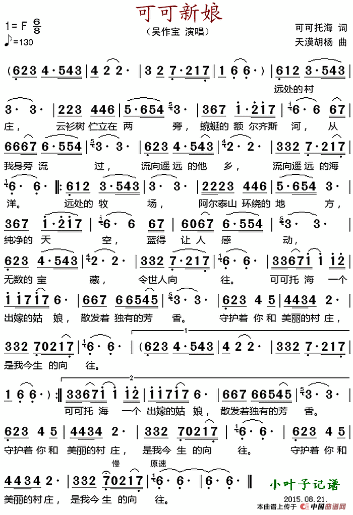 关于《可可新娘 》曲谱的评论